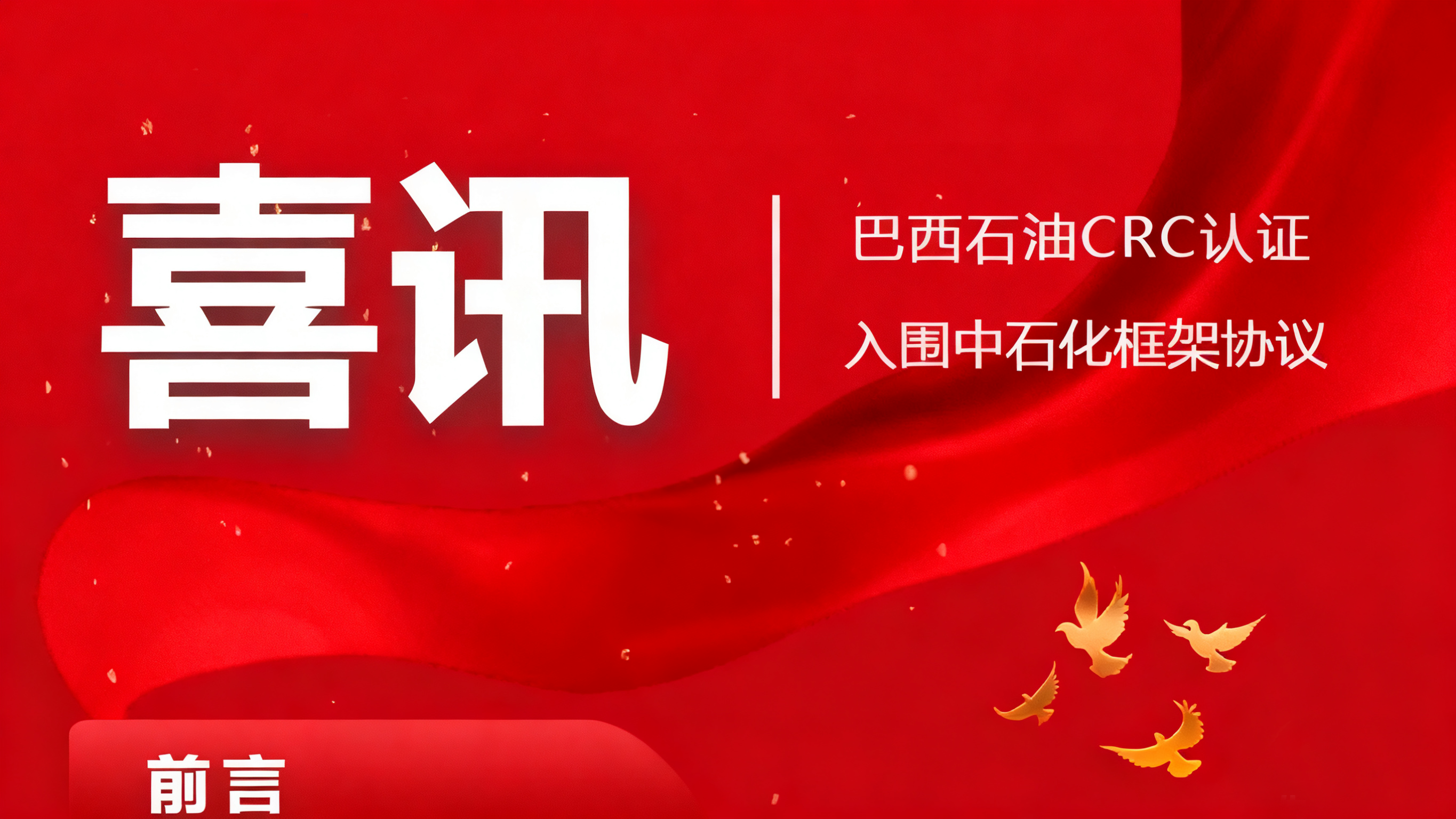 2025/11/21 查看詳情威?;C(jī)械有限公司近日接連斬獲國際國內(nèi)兩大高端市場入場券:成功通過巴西CRC認(rèn)證,正式進(jìn)入巴西石油供應(yīng)商體系;同時(shí)入圍2025年中石化復(fù)合板年度框架協(xié)議。這…